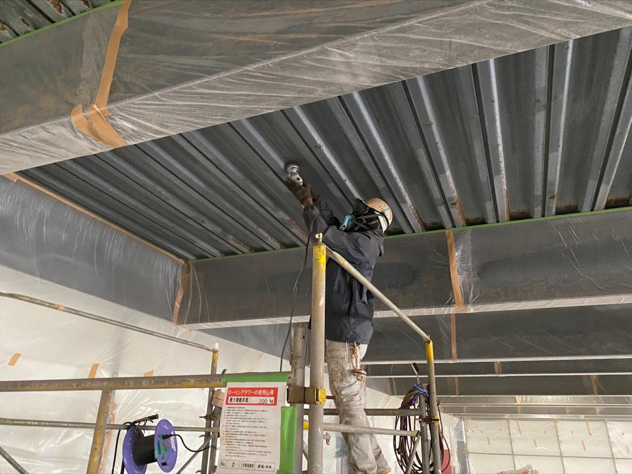 デッキプレート防錆工事2Fにてケレン作業中👷🏼♂️